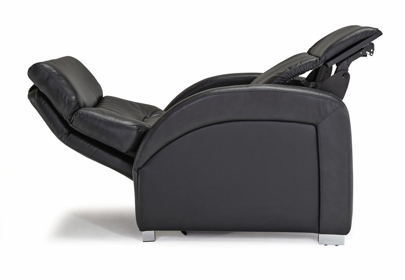 One can experience the amazing zero gravity position at the touch of a button and discover convenient comfort right at home. The ZG5 power recliner allows ease of movement to an upright or reclined position. Fluidly recline to the health-enhancing zero gravity position for reduced stress on the back and increased circulation. For added support, the lumbar back pillow and head pillow can be adjusted to help you find the perfect position for complete relaxation or sleeping. State-of-the-art comfort features, a slim profile accented with back pulls and a brushed chrome leg deliver understated elegance, while also providing you with a sanctuary to help the stress of the day melt away.