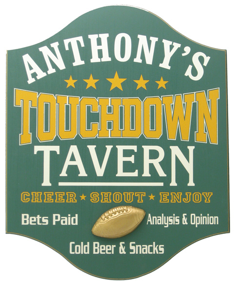 Touchdown! Add some football season atmosphere to any room with this personalized sign, featuring your own first name, last name or nickname (up to 14 characters).