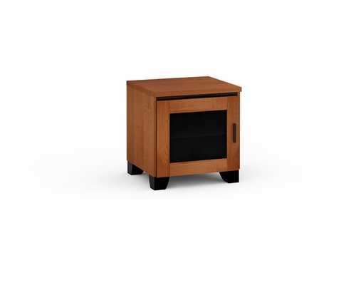 Its essence is casual comfort made unique by wide framed wood doors with smoked glass inserts. The thick wood cross sections of top and sides give this unit a dramatic look.