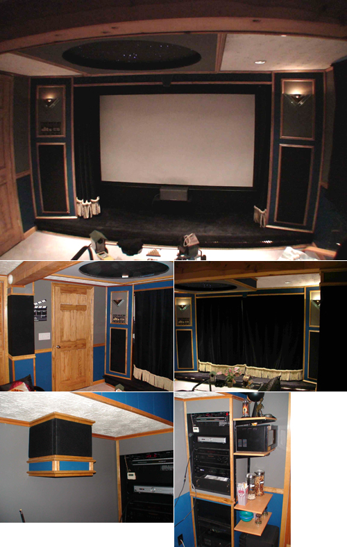 15' x 12' home-made theater. Fiber optic ceiling layed out w/ accurate constellations and custom sequential LED illuminator. HD72 Optoma Projector. 100" electric Elite screen. Sony amp, DVD and 6.1 speakers.