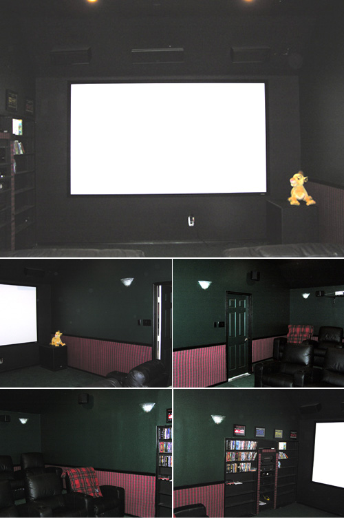 Description: A complete DIY project, I converted a small (20' X 12.5') room above our garage into our home theater. The project took about 68 hours of time (over 4 months) to complete and cost a total of $2500 (not including equipment). The theme of the theater is based upon my ancestry and features Royal Stewart plaid throughout.