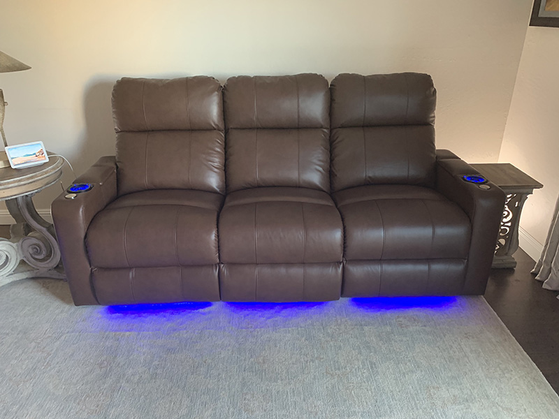 HTdesign Southampton home theater seats are packed with features that include arm storage, tray tables, power recline, top grain leather and LED cupholders with controls and LED base lights. You can also charge your phone and tablet with included USB charger. HTDesign features first class theater seating fast. The Southampton is a top quality seat with pocketed seat coils, kiln dried hardwood frames and high density foam. It provides head to toe support while providing unparalleled comfort.
