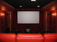Make your home theater more like the theaters of yesterday with quick ship and custom home theater drapes in velvet. Choose from over 60 fabric colors. These drapes are custom made to your specifications with a 3 prong pinch pleat. We offer microfiber suede and velour at 100% fullness. Fullness is the number pleats in the drape. You can order samples right on our site. You will need either the motorized drape kits or the manual curtain rods to complete your drape installation.
